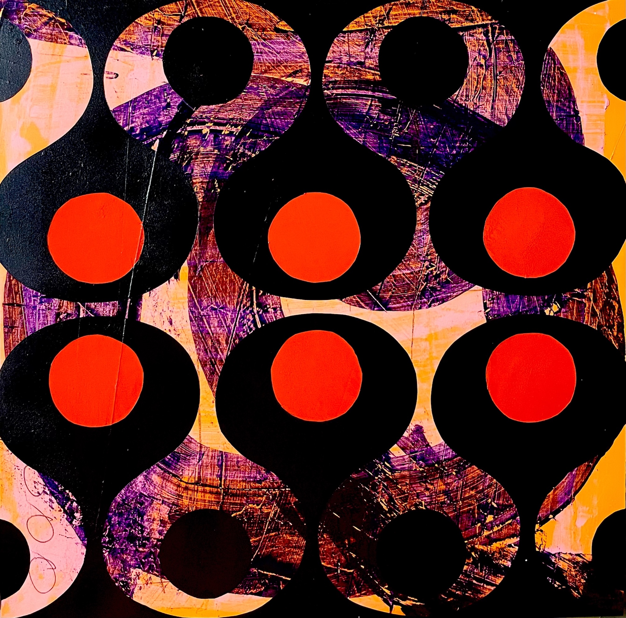 Dr. Mārata Tamaira, curator, writes, “In his series of abstract paintings on canvas and wood panels, Carl reflects on the volcano deity ʻAilāʻau, who predates the more widely known goddess Pele in the Hawaiian pantheon and from whom the artist descends. Over the last century, ʻAilāʻau’s story has largely receded into obscurity. Yet the 2018 eruption of Kīlauea on Hawaiʻi Island, along with its continued activity, has signaled what many kūpuna (elders) and cultural practitioners understand to be the triumphant reawakening of a long-sleeping god. Pao’s new works seek to return ʻAilāʻau to the center of collective remembrance—not as a challenger to the Pele narratives, but as a coequal presence within a richer, deeper, and more expansive cosmology.