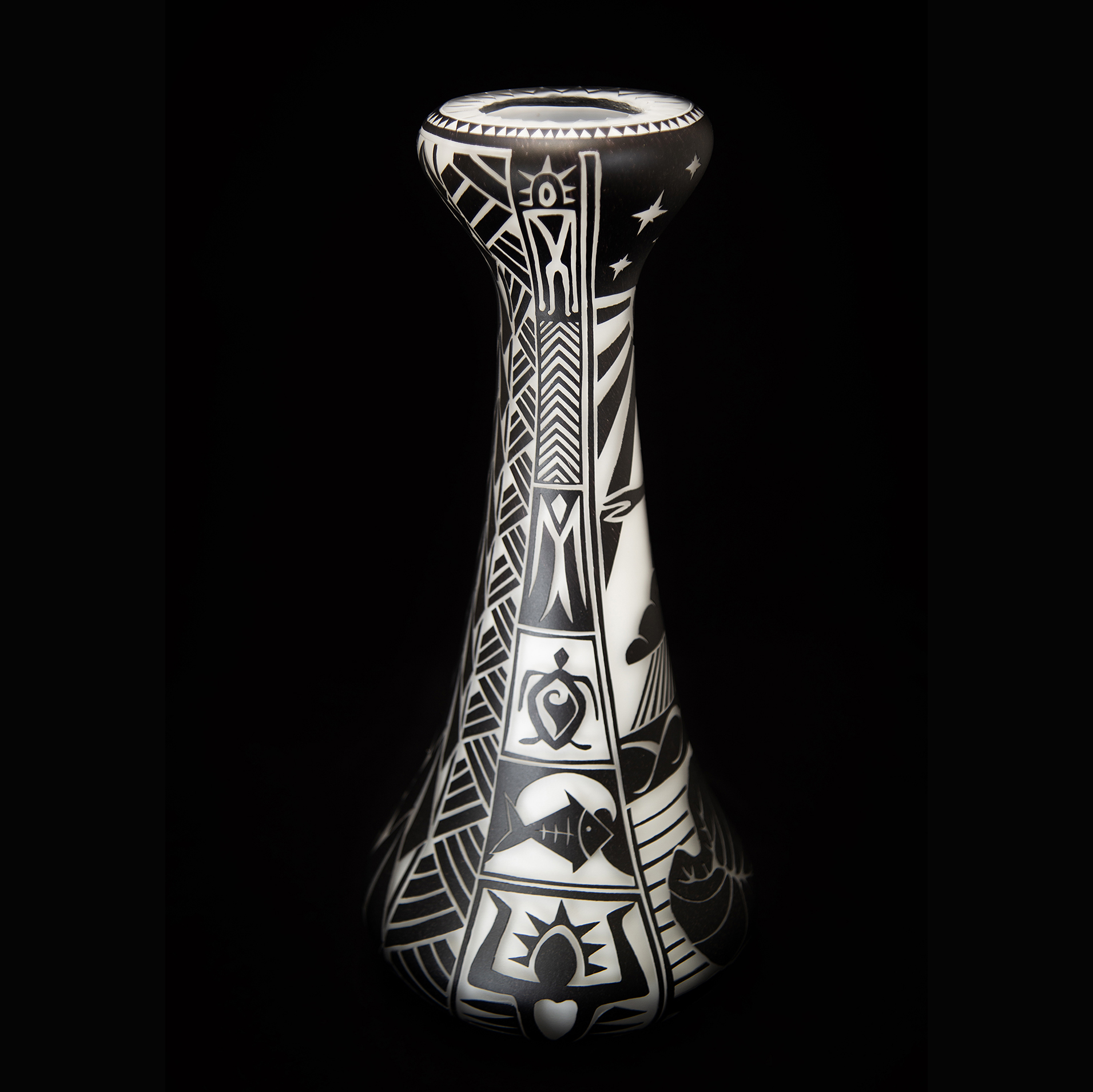 This piece of art is from the exhibition titled Voyage From Hawaiki: The Realm of Origins and Ancestors, on display January 10th through February 15th at Volcano Art Center Gallery in Hawaiʻi Volcanoes National Park. Art work sold from this collection will not ship until after February 15th.