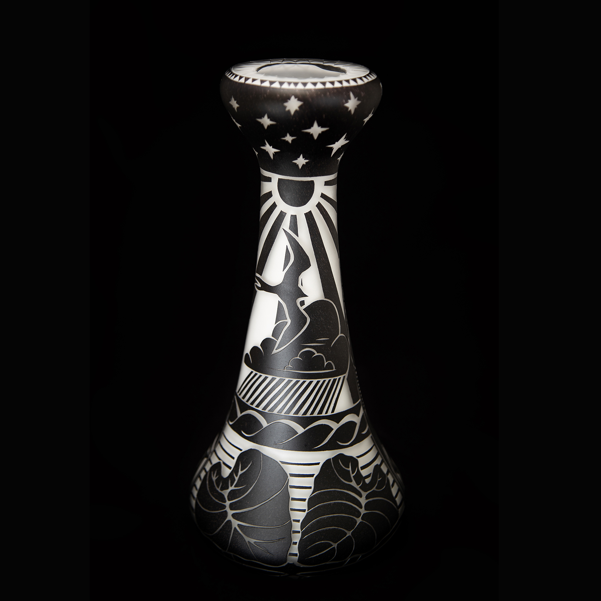 Handblown and carved glass poi pounder shaped sculpture by Daniel Moe