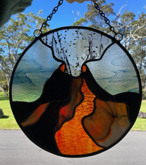 Volcano, original stained glass piece by Claudia McCall.