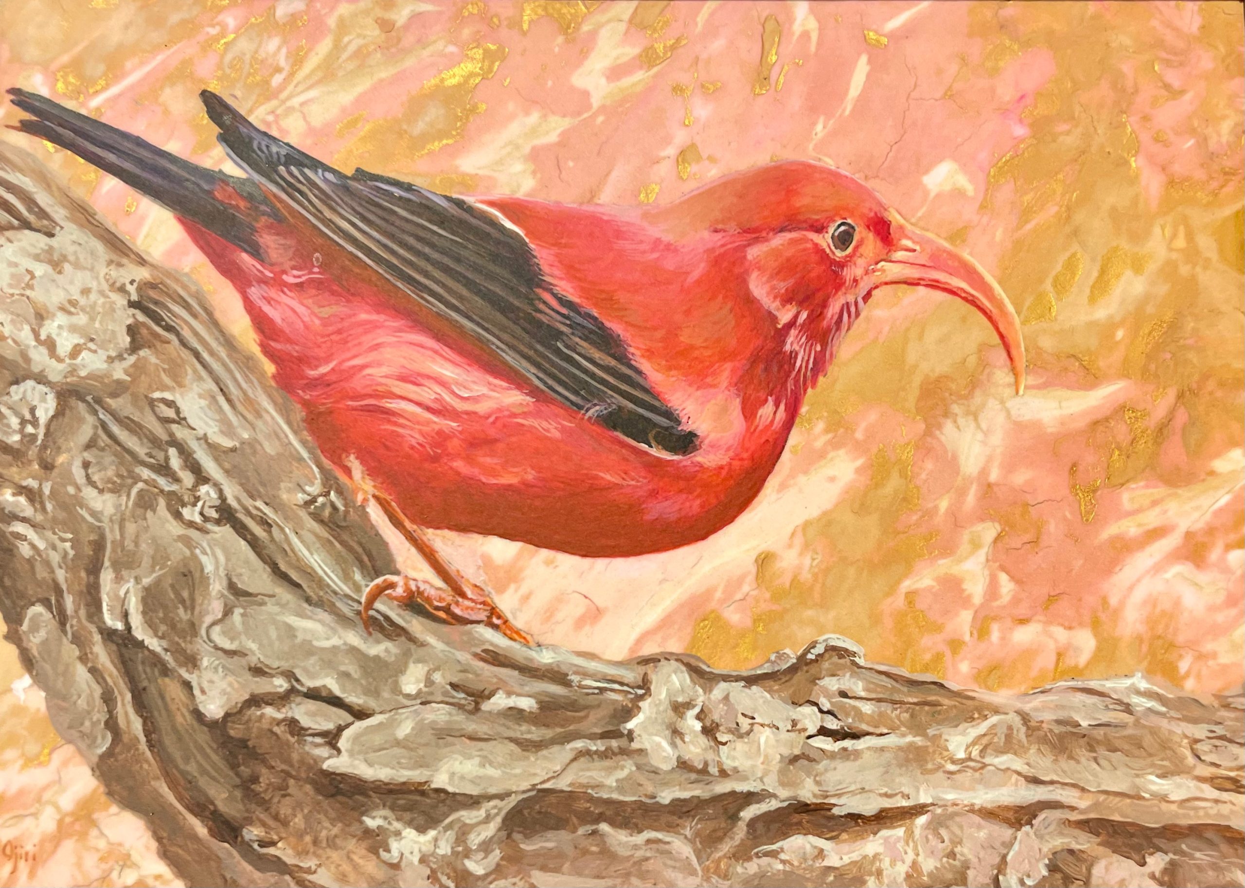 featuring a ‘I’iwi, Scarlet Hawaiian honey creeper (Vestiaria coccinea)